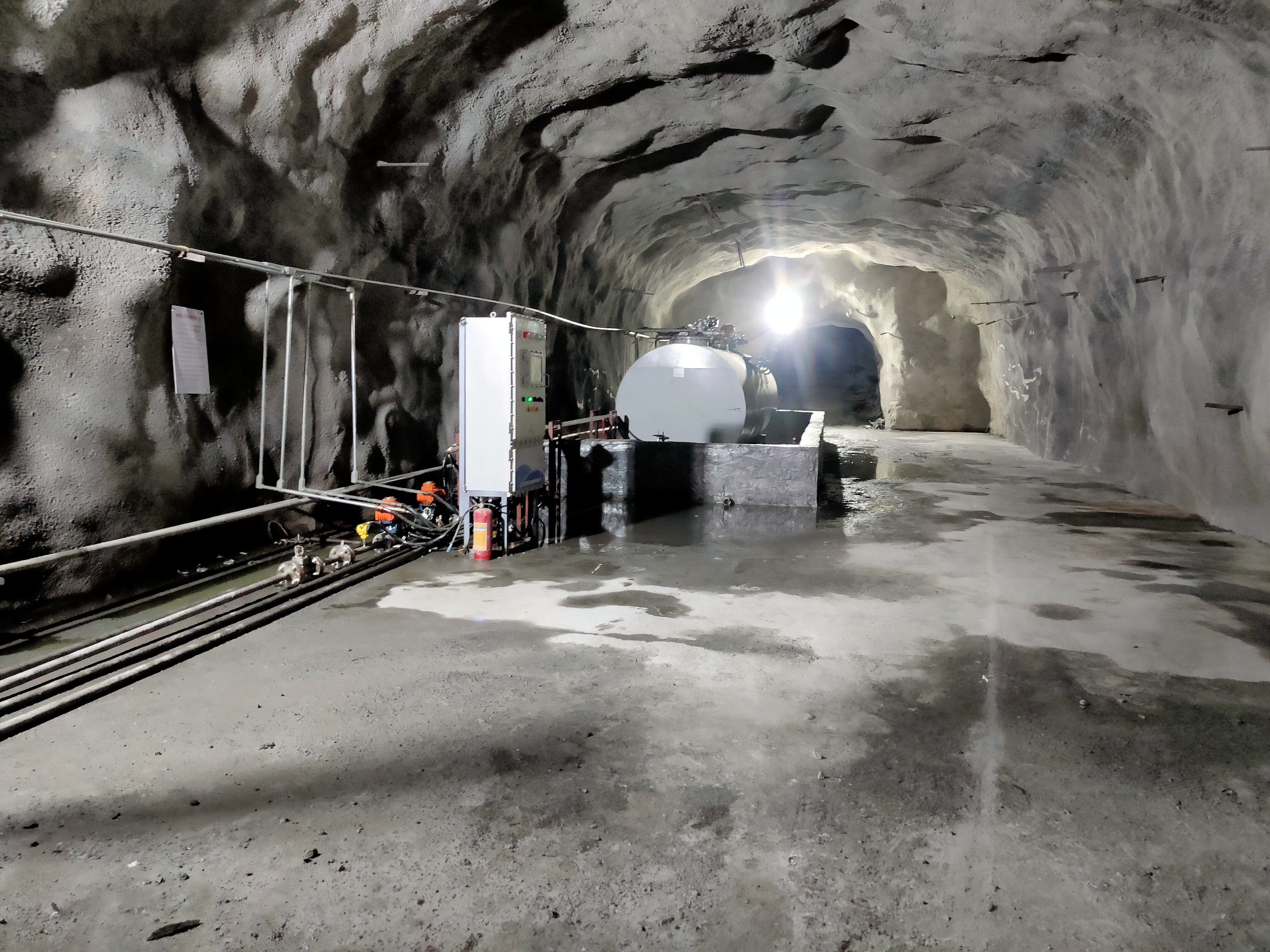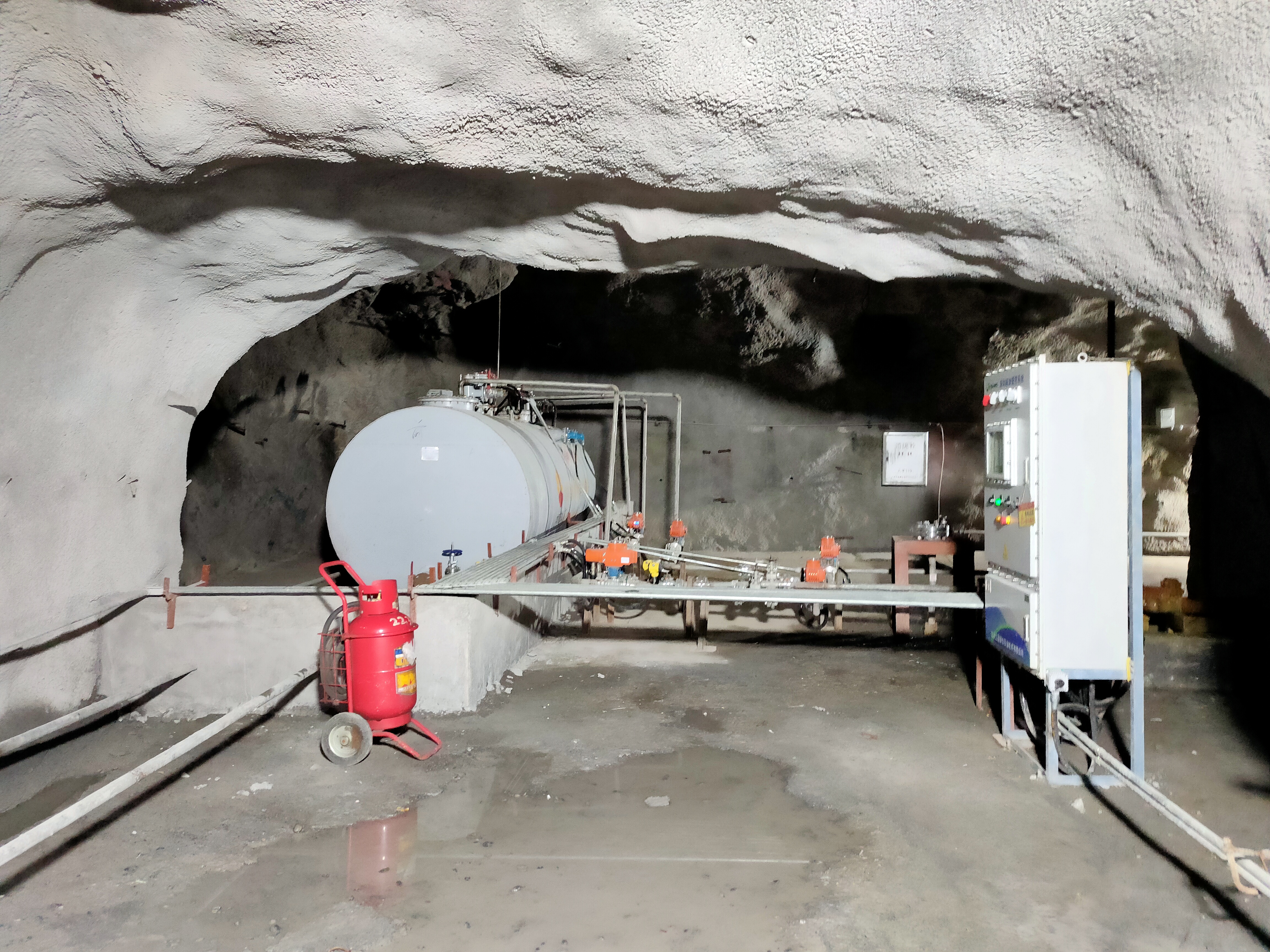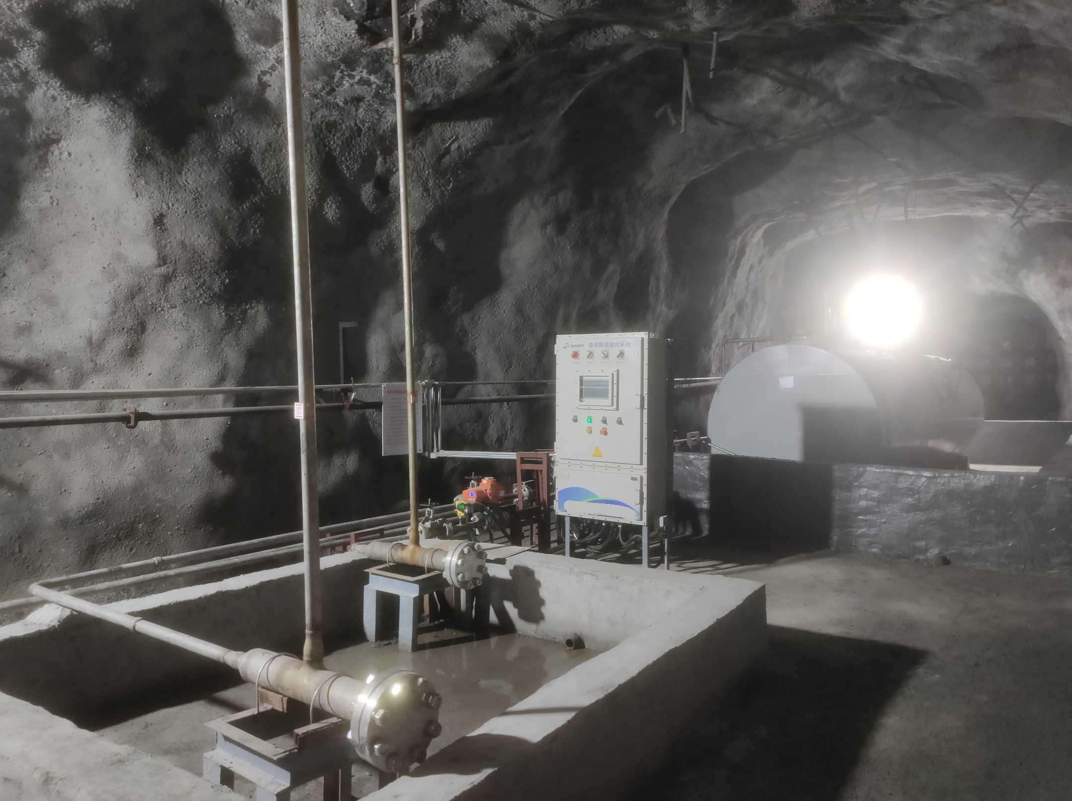 凡口鉛鋅礦井下680米智能供油系統(tǒng) 目前正有序施工中, 預計9月底完工并投入使用。該項目為全國首創(chuàng), 由韶關企業(yè)進行技術攻堅 并申請多項國家專利, 擬申報吉尼斯世界紀錄 “全球最深的智能供油系統(tǒng)”。 凡口鉛鋅礦井下智能供油系統(tǒng) 需在地面設置橇裝加油裝置, 并分別在地下 330米、480米和680米處 建設智能化供油系統(tǒng), 通過鉆孔鋪設輸油管線, 將油品從地面輸送到井下。 地下330米智能加油點, 目前已進入收尾階段, 現(xiàn)場有兩根 從地面裝置接下來的輸油管, 用于工程車加油, 另一邊也有兩根輸油管輸送到 地下480米和680米的智能加油點。 別看油管很細,鉆孔不大, 但施工難度并不小, 全長3千多米的輸油管, 垂直打孔偏差不能超過1米。 作為亞洲最大的 單體鉛鋅銀礦生產基地, 凡口鉛鋅礦 有井下工程車輛和設備100多臺, 井下用油量大。 井下智能化供油系統(tǒng)啟用后, 不僅解決井下用油安全、環(huán)保風險, 同時降低生產用油成本, 推進凡口鉛鋅礦建設智能化礦山, 實現(xiàn)“無人開采”。 如果鉆孔偏差太大,就找不到鉆下來的孔,影響輸油管道的布設,增大成本。3千多米有5千多個焊接點,所有的焊接口都要達到高壓管道的焊接要求,這個項目是全國首創(chuàng),在全國所有礦山企業(yè)中,我們是首次使用通過輸油管道往井下輸油,并且實現(xiàn)智能控制的方案。 這個月底把地下330米加油點完工,開始加油,9月底把底下480米和680米開通使用。希望通過這個項目打造創(chuàng)新科技的韶關樣板,把先進的經驗和技術推廣到全省、全國乃至全球。